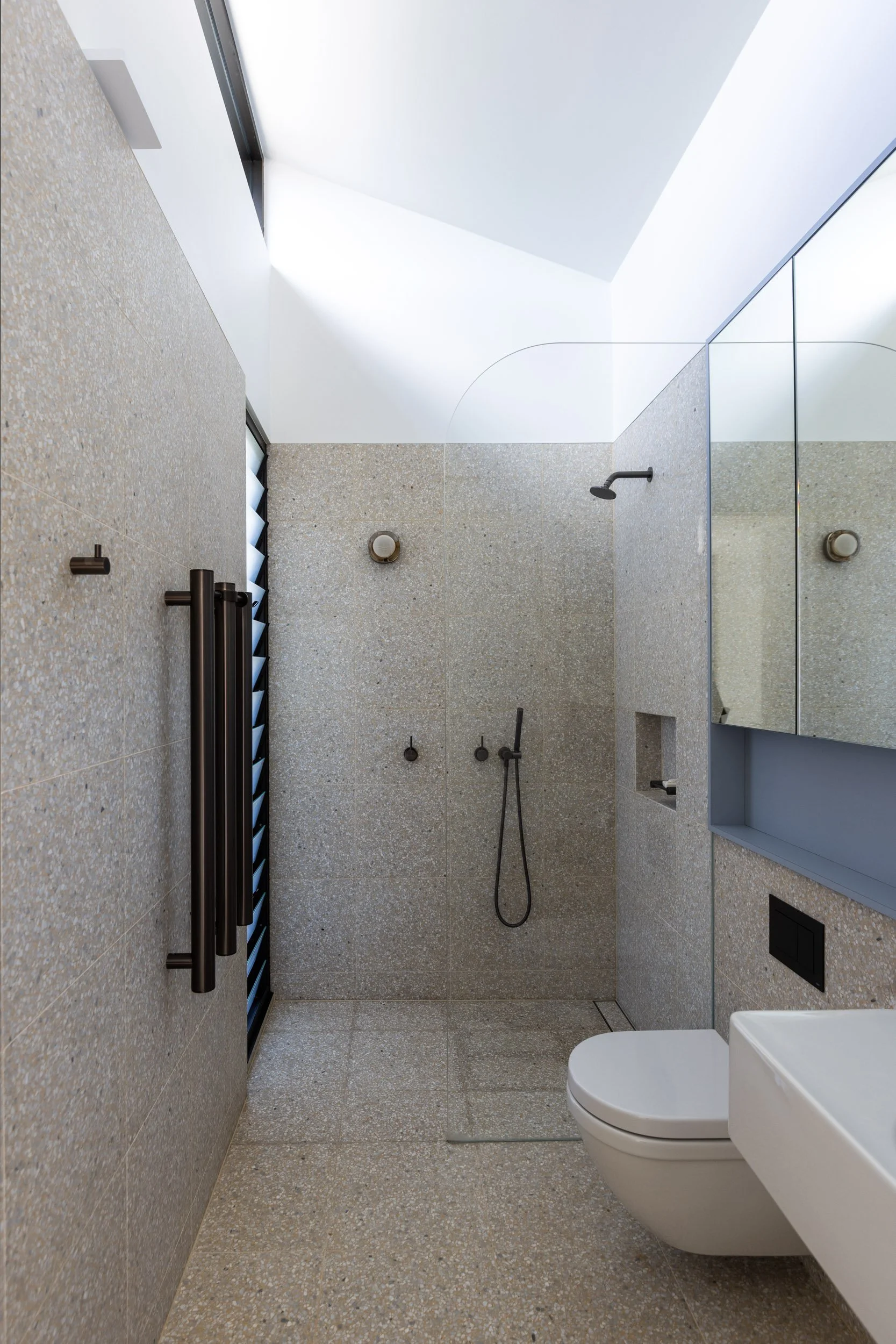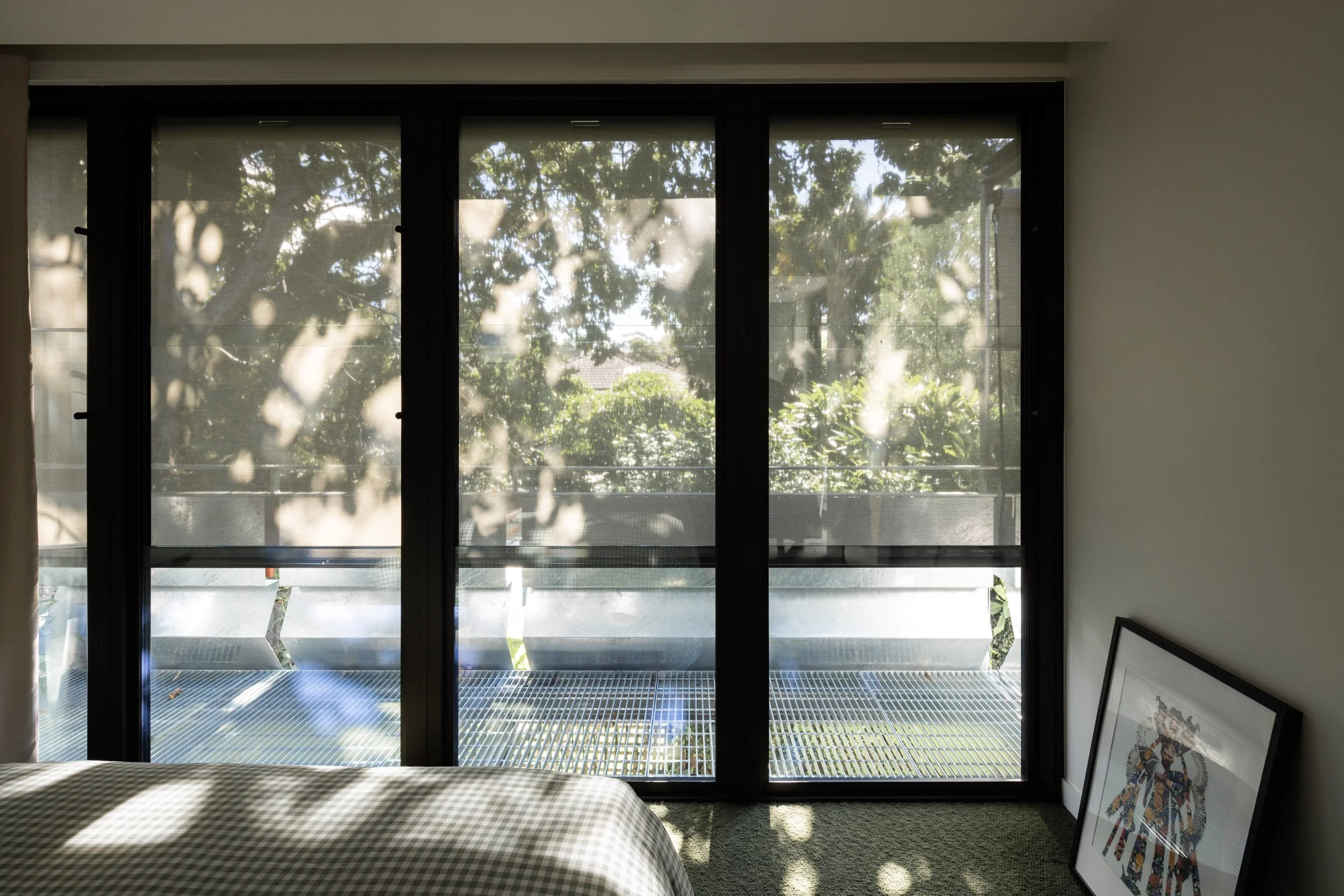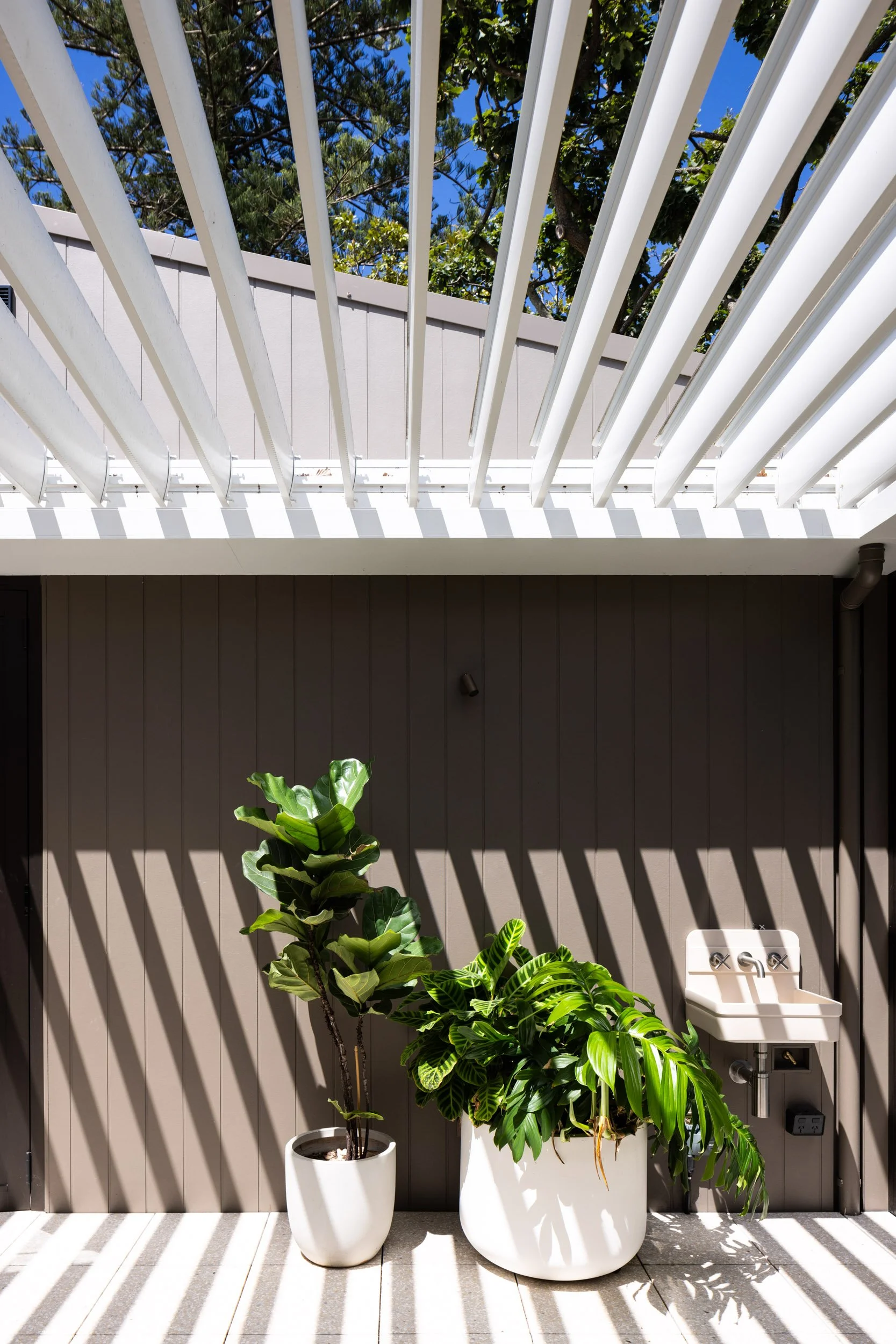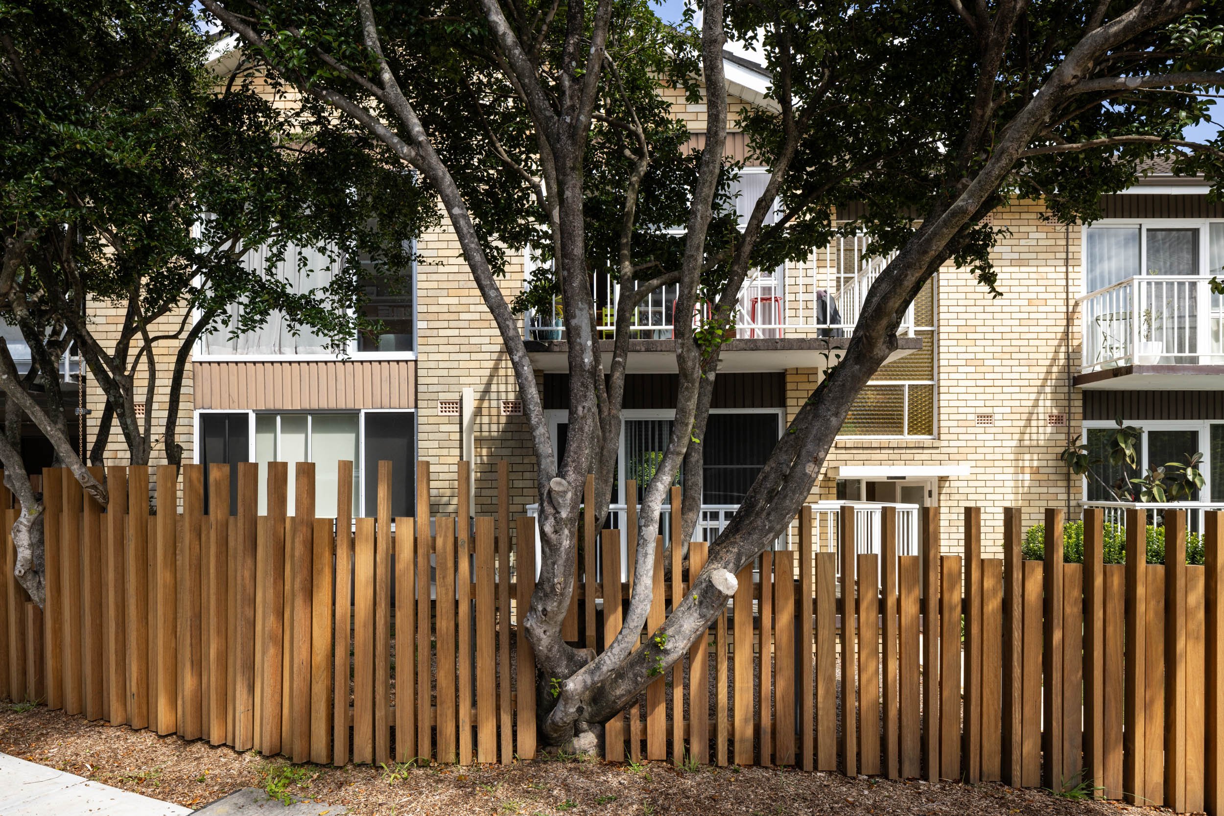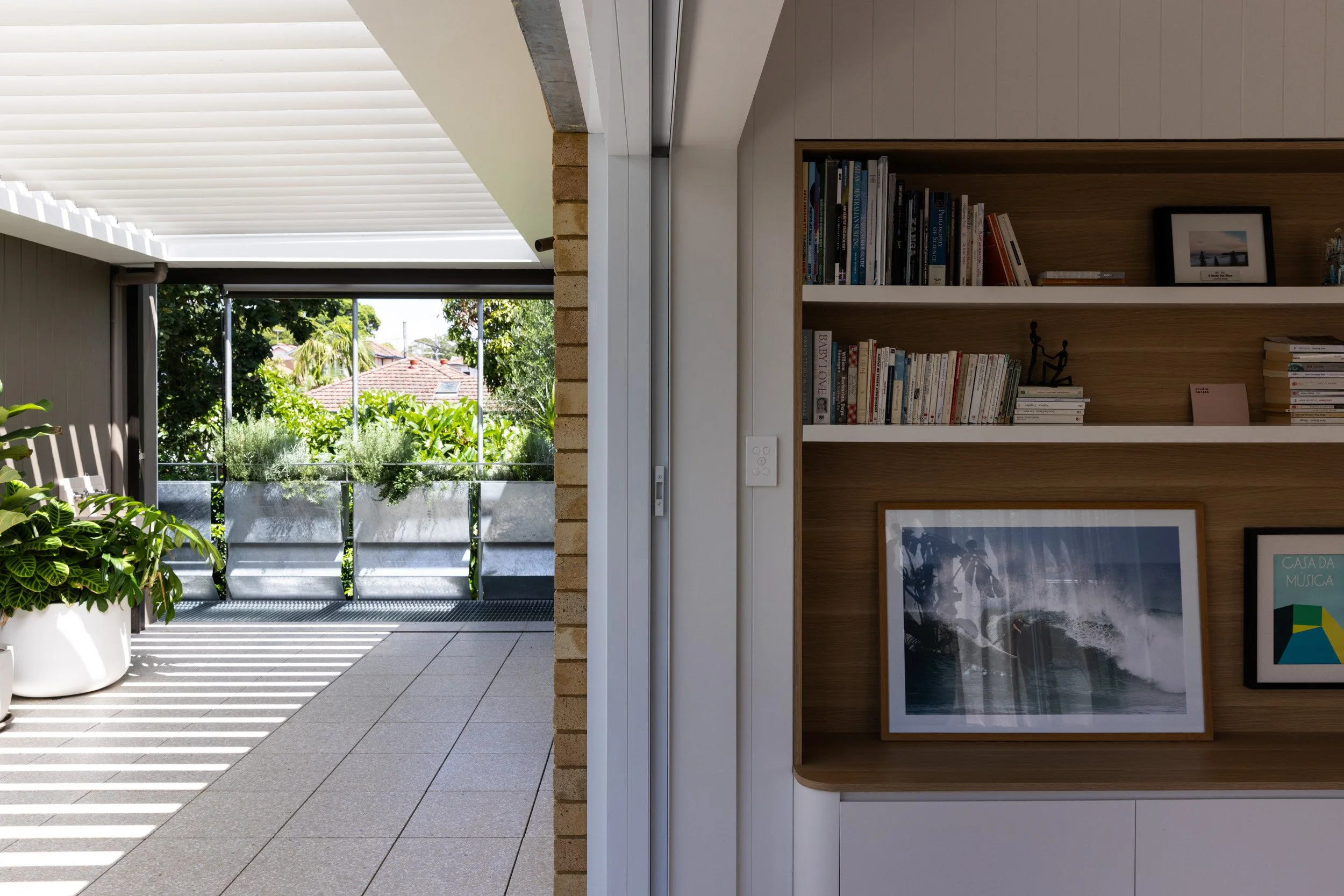 Taking advantage of a corner block lot, the extension of one unit to an existing block of 4 creates space where it’s unexpected. The new extensions above an existing carport, articulates around a “green heart”: an open covered terrace which acts as the lung and regulates the weather in summer and winter. All the rooms open onto this versatile open space and benefit from cross ventilation and controlled light. A series of integrated planters into balustrade creates privacy and frame views while addressing the street in a sustainable manner. A refreshing change and modern innovation for a suburban space.